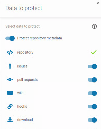 When creating a backup plan, you can select which data should be secured. By default, all data types in the plan are included. However, if you know that certain elements—such as variables or pull requests—will not be needed for future recovery, you can deselect them from the list. Backing up less data reduces the number of sent queries and improves overall efficiency.