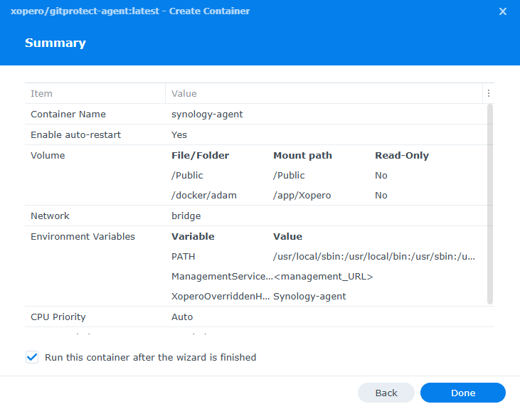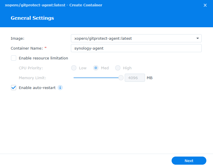 10. **Container Station** will download the latest **GitProtect** image and create the container based on that image.
