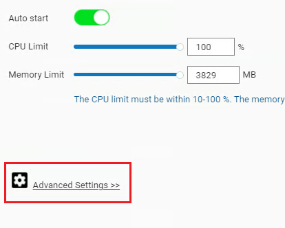 > **CPU Limit** — allows you to specify the percentage of CPU usage allocated for the container