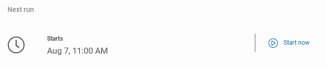 1. **Next run** — here you can see when the next backup plan is scheduled to run, or you can start it manually: