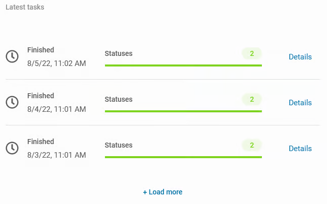 3. **Latest tasks** — shows the status of the most recent backup tasks.