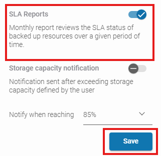 2. In the **Email notifications** menu, scroll to the bottom, enable the **SLA Reports** switch, and then click **Save** to apply the changes.